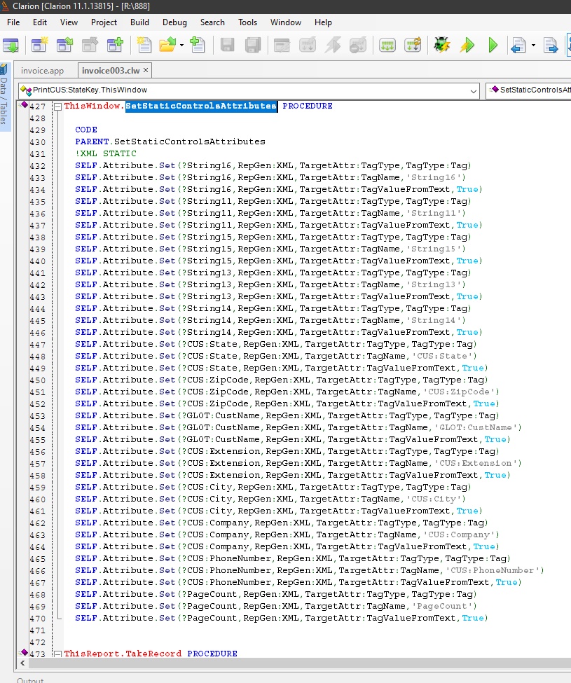 А дальше что? Надо в файле clw найти процедуру. Потом парсить саму процедуру. Ужас. И не только prop:SQL нужно проверять. Есть ещё prop:Name, например.finsoftrz писал(а): 15 Сентябрь 2022, 19:05 У меня поменьше процедур, но кода, скорее всего, больше. Парсит меньше минуты. Смотрите сами.