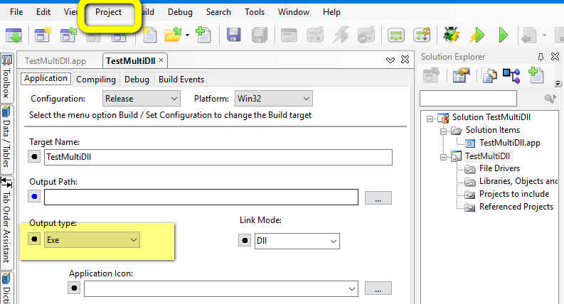 Переименуйте в MyTableAndForm.app по умолчанию Main -> TableTest и в data_all.app в Main -> DataTest, а то будут ошибки и скомпилируйте