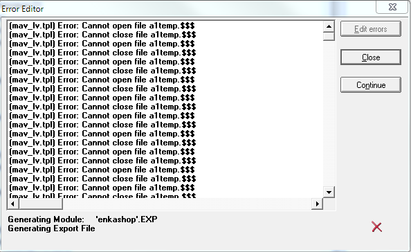 Я тоже постоянно сталкиваюсь, не шаблонописатель, но выскажу свои дилетантские мысли, не пинайте сильно :) a1temp - файл который формируется для MAV файлов exp -> lib, в шаблонах #OPEN(%tmpMAVFile) и #CLOSE(%tmpMAVFile), так вот не отстыковка в них, #OPEN(всего 2) по одному разу