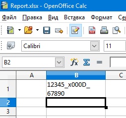 Причём, что интересно, вот этот код "_x000D_" действительно как строка записан в XML файле.