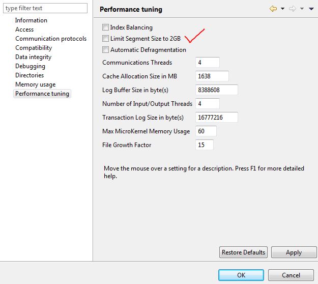 Actian Data Base 13 это значение 64 GByte …