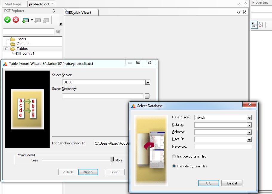 Пытаюсь следующие подгрузить - Import Tables-ODBC-MyDataSource и .... ничего - ни ошибок, ни таблиц. Пробую на новом словаре - то же...