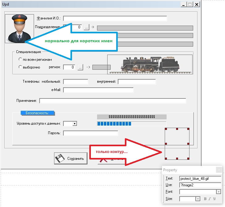 Перешел пару месяцев назад на Win10-32 и обратил внимание, что в C6.3 для контрола Image в случае использовании имени графического файла длиной формата более 8.3, в дизайнерском окне процедуры Window видна только рамка, а его содержимое не отображается. Сокращать длину имени файла (в моем примере это protect_blue_48.gif) не хочется, ведь он используется и в других приложениях. Контур вместо фактической картинки мешает восприятию дизайна...
