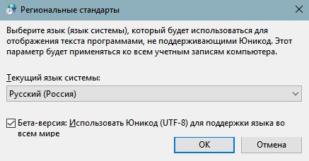 С включенной этой галкой всё плохо. Кракозябры. Верю RZ, когда он говорил - сначала Unicode, потом 64-бит. Может знает какую инсайдеровскую инфу. С очередным обновлением Винды получим включенную галку без возможности выключить. Поначалу костыль найдётся на просторах вселенной. Но только поначалу.