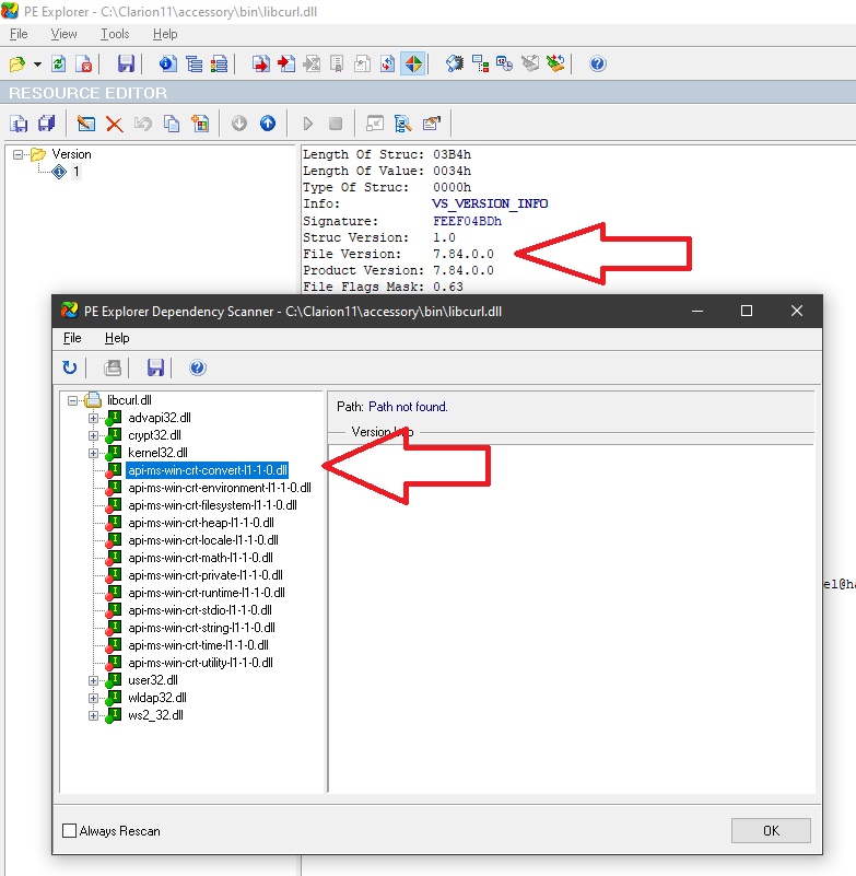 Кстати, curl.exe той же версии точно так же зависит от всех этих api-ms-win-xxx-11-1-0.dll, это к тезису "лучше использовать curl.exe, чем libcurl.dll".