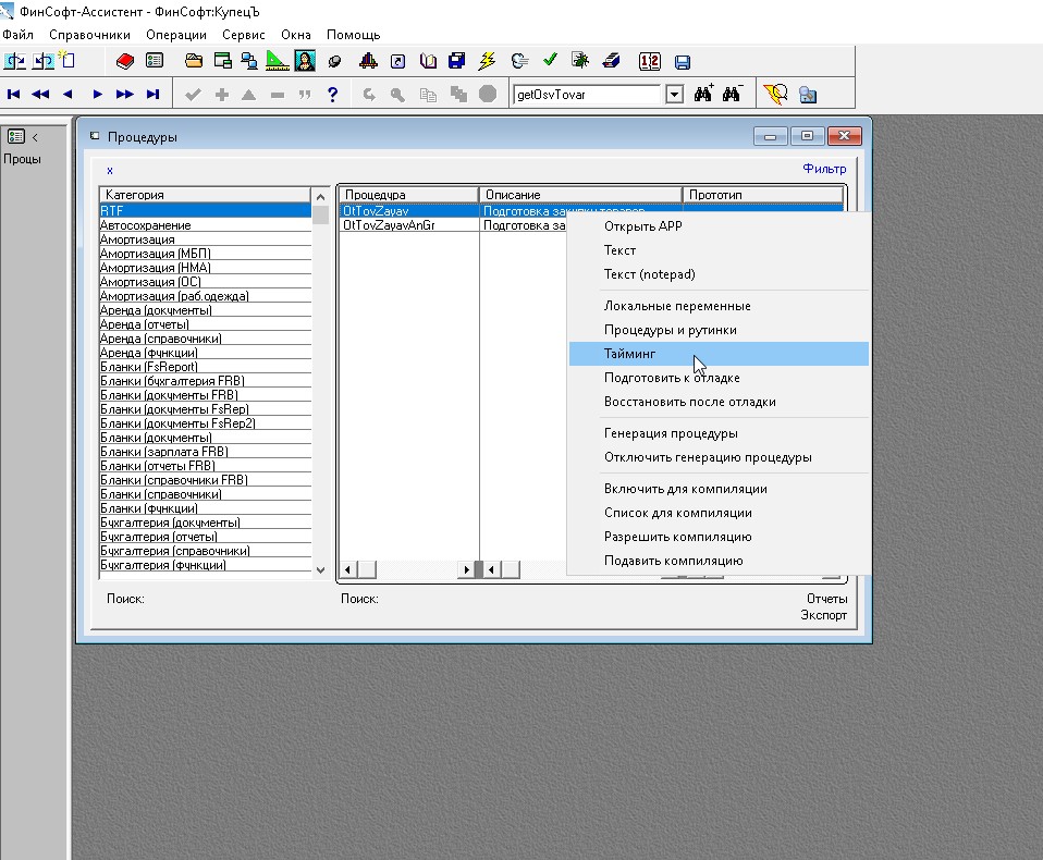 У себя в менеджере проектов находим процедуру (через copy/past из среды клариона), в контекстном меню выбираем "Тайминг".