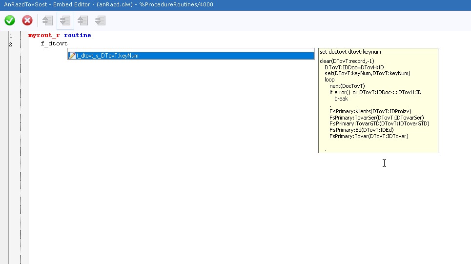 Snippets создаются по принципу <метка>_<префикс таблицы>_<операция>_<ключ>. Например, для товарных документов f_dtovt_s_keynum.