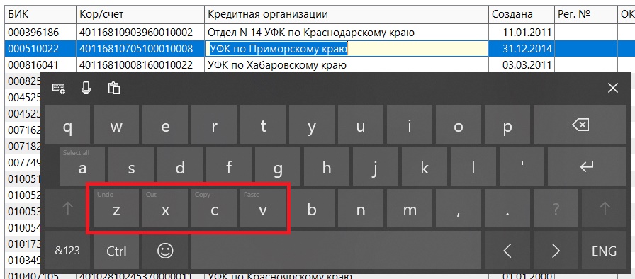 Нажимаем кнопу CTRL и можем выполнять операции с ClipBoard.