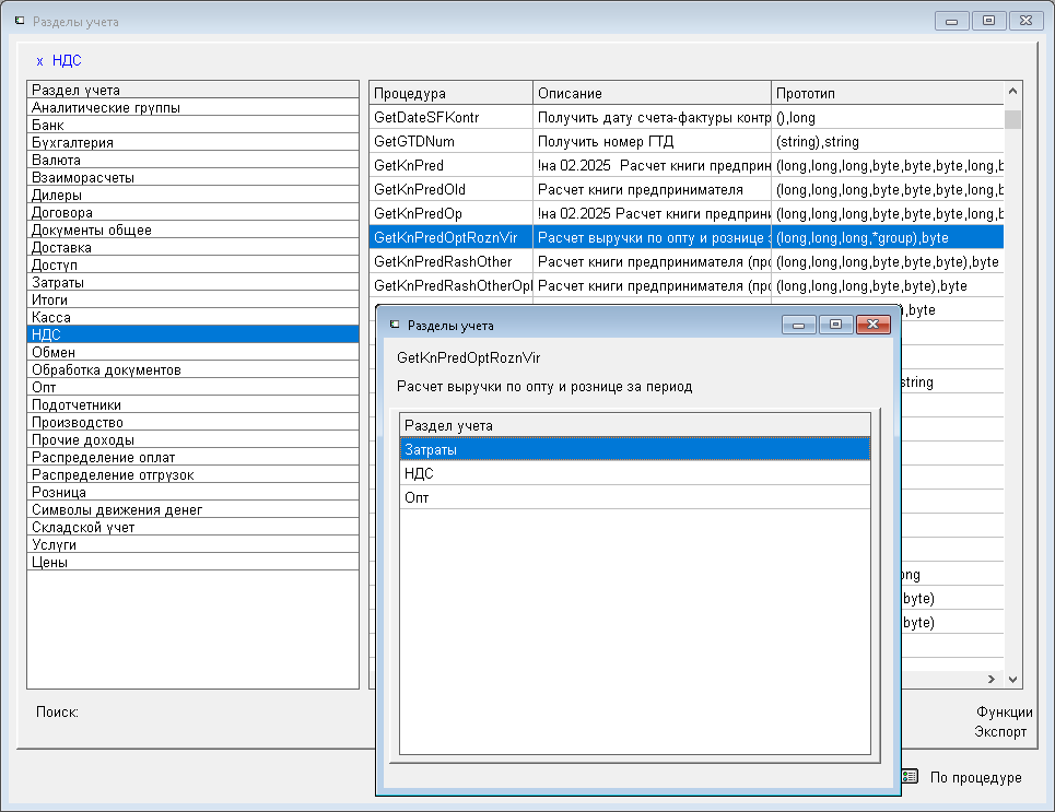 Затем с помощью шаблона утилиты выводился список процедур в app, относящихся к заданному разделу.