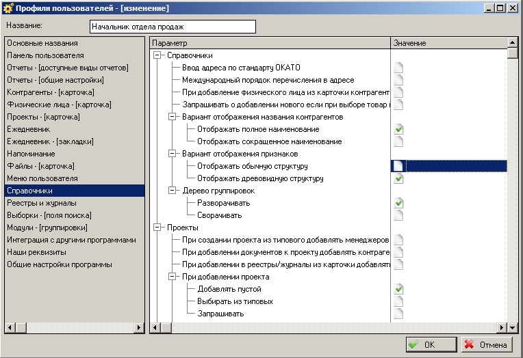Это системные настройки. Обычно пользователи сюда не ходят (требуются права админа или суперпользователя). Для разного рода хотелок есть "Дополнительные параметры" (кнопка снизу на скриншоте). Там расширяемое дерево, а значения могут загружаться из конфигурационных файлов. Аналогичное дерево есть в модулях расчета заработной платы и бухгалтерского учета (точнее, дерево одно, отражаются разные разделы). Если различные дополнительные параметры (товаров, контрагентов, сотрудников, фирм), которые являются расширяемыми списками с группами. Общая концепция разделения настроек такова. То, что хочется жестко контролировать в программе, оформляется в виде полей базы данных и называется системными настройками. Прочее оформляется в виде записей в базе данных и называется прочими настройками.