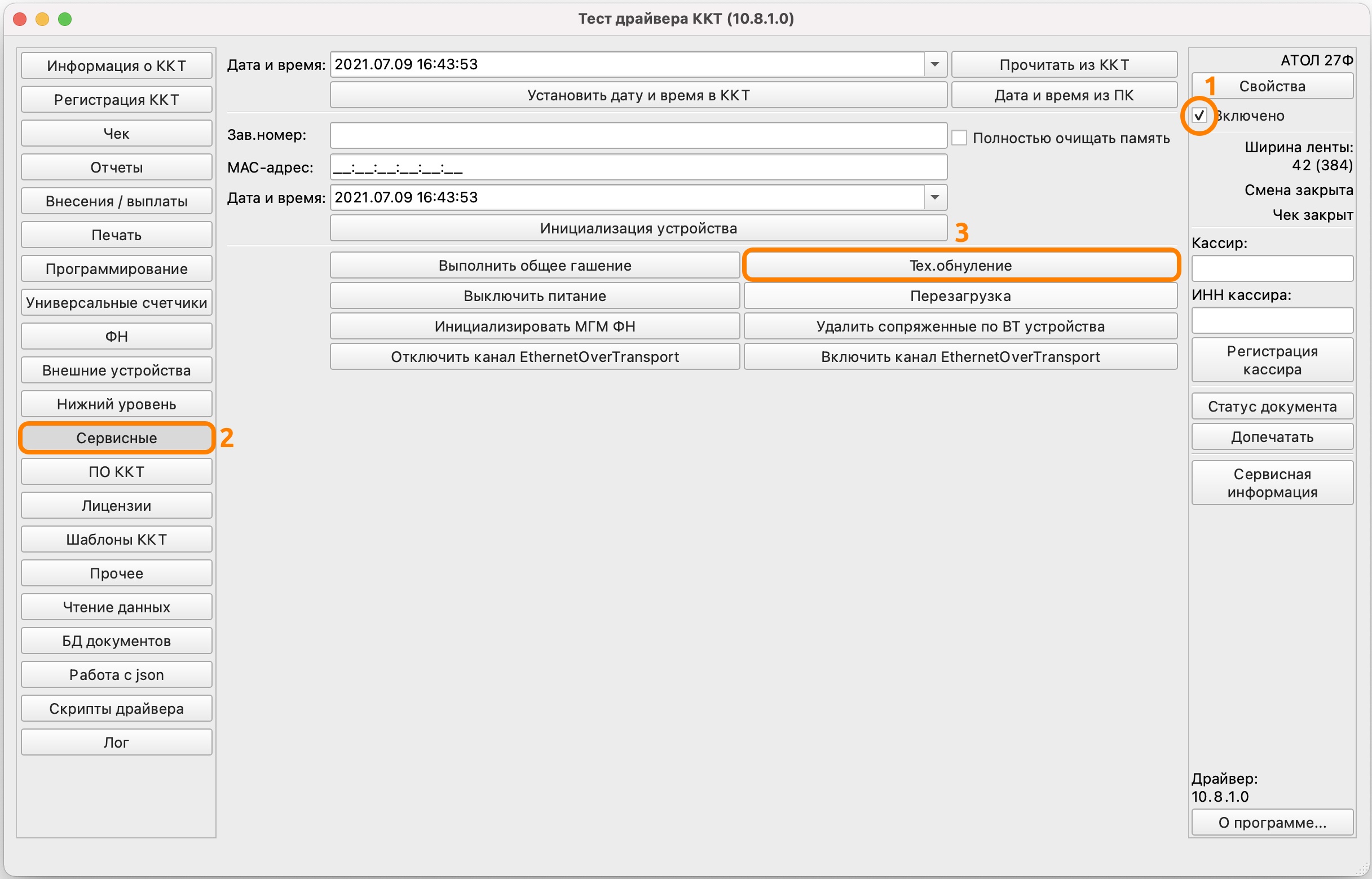 Странная ситуация. Перепрошили фискальник на ффд 1.2, версия драйвера 10.9. Чеки обычные пробиваются (для маркировки пока сканера нет), а снимать x,z отчеты не хочет. Возвращает ошибку (11) не поддерживается в данной версии. Хотя в тесте драйвера снимаются. Аналогичная ошибка при попытке промотки или отреза ленты.