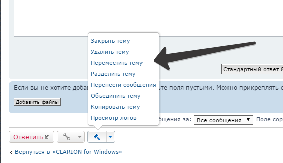 Не нашёл опции переноса темы, есть только перенос сообщений в другую тему.