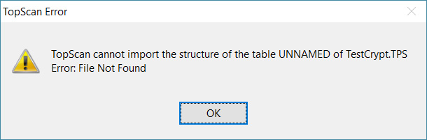 Утилита TOPSCAN.exe из CLARION 10 (build 10.0.12278) открывать его отказывается (пароль, естественно, вводится правильный). Утилита TOPSCAN.exe из C9 файл открывает без проблем. После ряда экспериментов выяснил. Новая утилита TOPSCAN.exe ( C10) многотабличные файлы без шифрования открывает. Файл из одной таблицы с шифрованием - тоже открывает. На многотабличном файле с шифрованием - проблема.