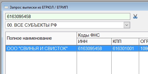 Это не совсем то, что нужно. Насколько я понял, там нельзя сделать запрос по ИНН. Этот сервис предназначен, в обсуждаемом нами контексте, для поиска по названию организации. То есть, например, на сайте вводим несколько букв из названия, во всплывающей подсказке появляется список похожих организаций для выбора. Поэтому их и называют подсказками.kreator писал(а): А здесь были - https://dadata.ru/api/suggest/#request-party?