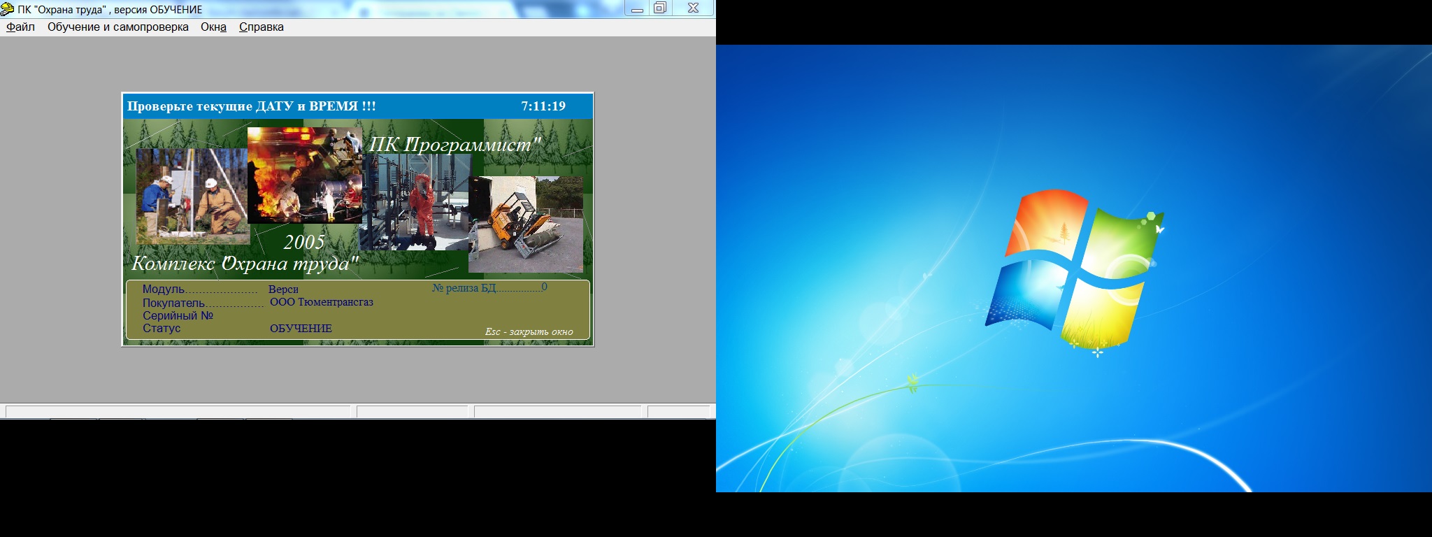 Написана под нас. Прога по охране труда, что-то типа тестов. Разработчики некто ПК "Программист". Во вложении скрин экрана.
