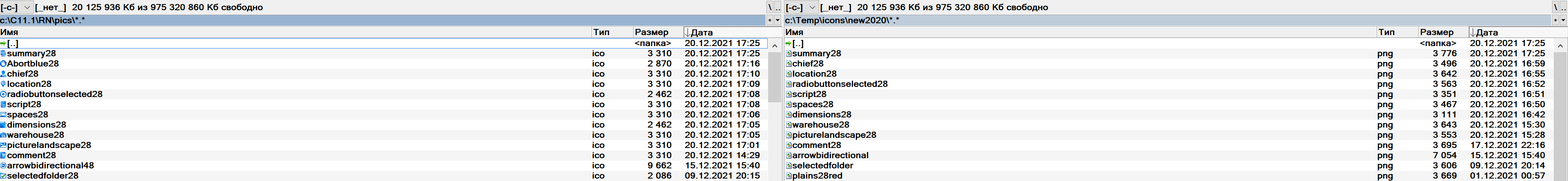 Я скриншот приложил с набором png из 1с8. Там все видно. Мне, в общем, все равно, как они из одного png достают несколько изображений. Размер у них, в основном, 16х16.kreator писал(а): 24 Декабрь 2021, 17:43Посмотрите размеры и цветность. У меня 28х28 пикселей, RGB 24 бита, алгоритм сжатия LZ77 (что наверно не важно). Иконки я делаю с такими же параметрами (алгоритм сжатия не в счёт).finsoftrz писал(а): 24 Декабрь 2021, 17:15 У Вас какие-то большие файлы. В 1С размеры png в районе 500 байт - 1кб.Невозможно. Мне не верите, Википедию почитайте. PNG создавался как замена GIF, единственное что не реализовали - хранение нескольких изображений в одном файле и, соответственно, анимацию.finsoftrz писал(а): 24 Декабрь 2021, 17:15 И таки как-то используют несколько png картинок из одного файла.