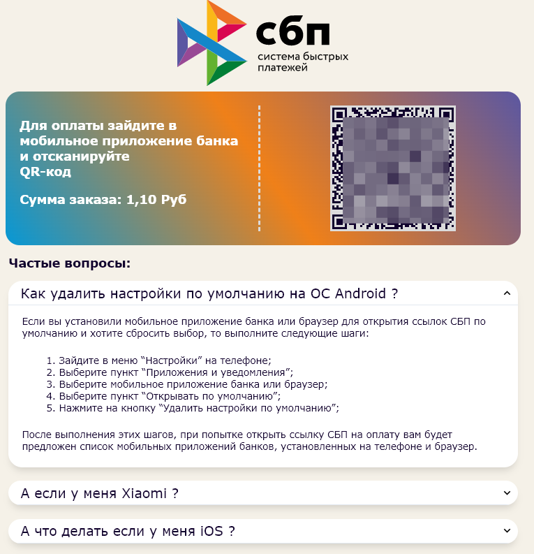 Суть в том что Сбер СБП отдает ссылку не на картинку а на страницу.