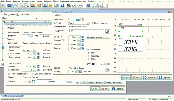 Т.к. допускаются операции над полями через EVALUATE(), то в отчете выводятся только строковые поля, в т.ч. и для чисел.