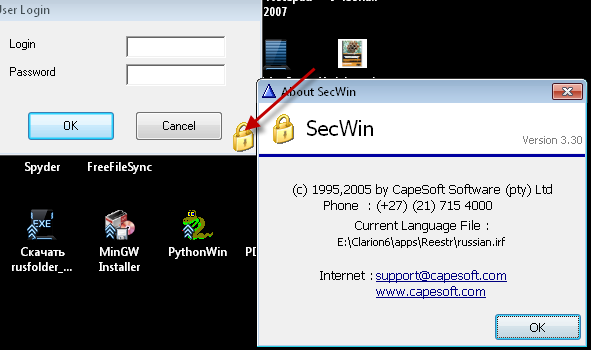 В данном случае я использую SecWin3(от Capesof) и решил отказаться от стандартного Логин-окна от Capesoft, т.к. там присутствет соверш. ненужная ссылка(см. рис.) Опционально можно использовать своё окно. Но все привыкли (и я в т.ч.) завершать Enter-ом в поле пароля.кнопке же "ОК" идёт проверка на правильность ввода пароля, если пароль не тот, то отправляемся обратно на поле "Password"