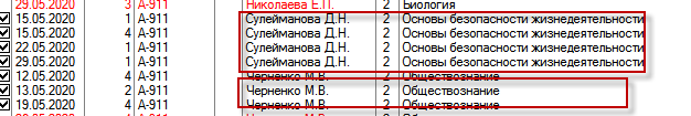 на рисунке записи с различными парами Преподаватель+Предмет д.б. выделены разным цветом