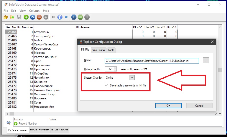 И желательно ещё выбрать шрифт для списка на 3-ей закладке с русской кодировкой.