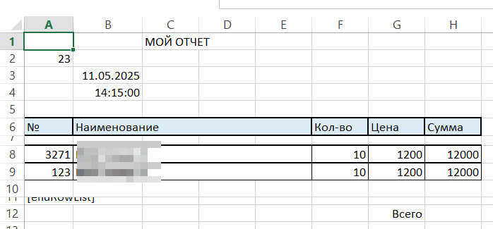 row: 1|col: 3|data: МОЙ ОТЧЕТ