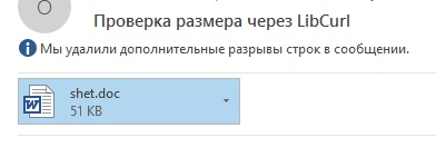 Игорь, ещё раз - я не создаю и пересылаю новое сообщение, я обрабатываю при помощи сабжа входящие сообщения, затем копирую их из входящих в другую папку, ну и при просмотре их уже на новом месте увидел сообщение про ??? размер, почитаю повнимательнее https://curl.haxx.se/libcurl/c/libcurl-tutorial.html - может найду решение...