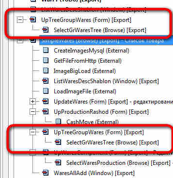 Процедура с атрибутом EXPORT, поэтому показана отдельно и в ветке, где она вызывается.