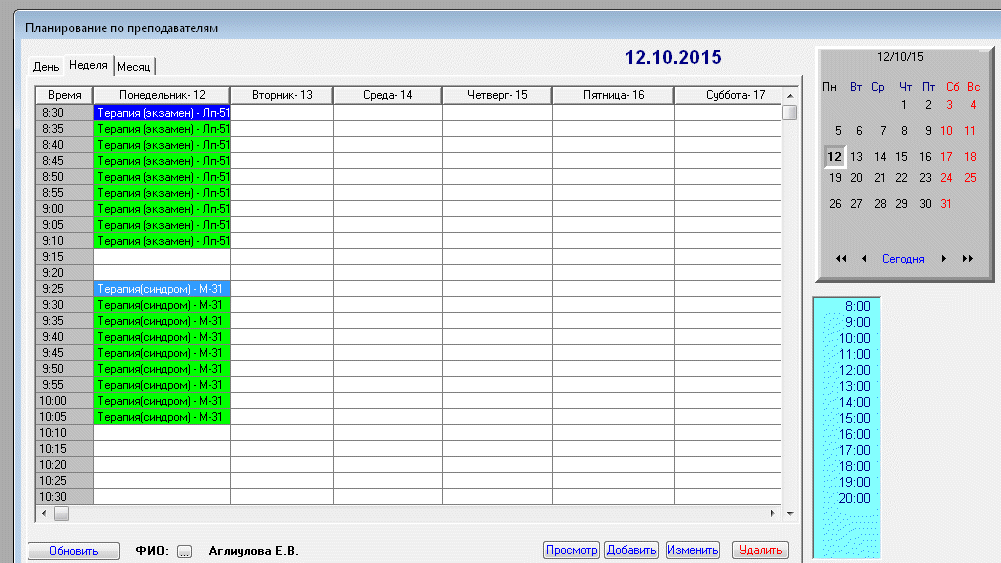 цветами полоски показаны выполненные, отмененные, актуальные события, а также конфликт (наложение) актуальных событий;