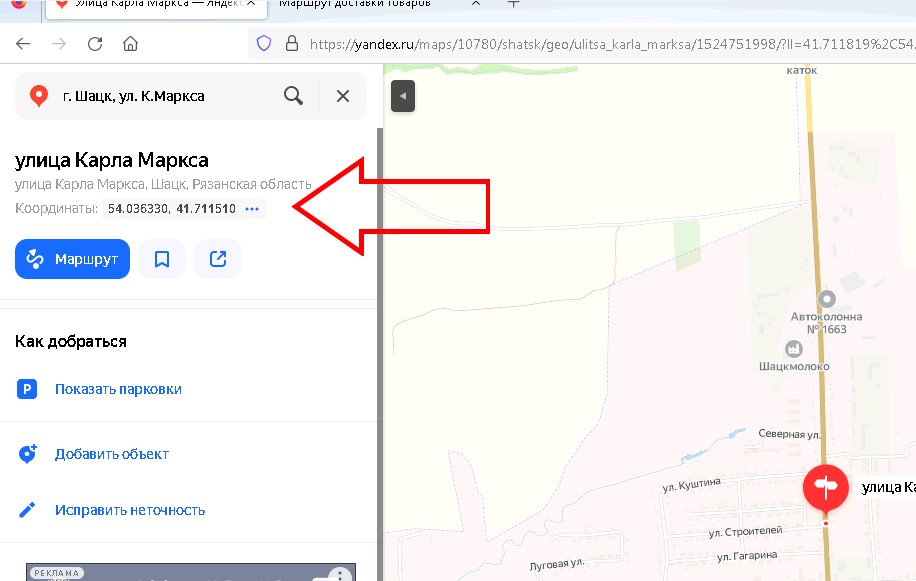Чтобы получить локацию при ее отсутствии у получателя, используем кнопки копировать/вставить. В буфер обмена копируется адрес. Переключаемся в сервис карт яндекса, вставляем и получаем локацию, которую можно скопировать обратно в наше приложение через буфер обмена.