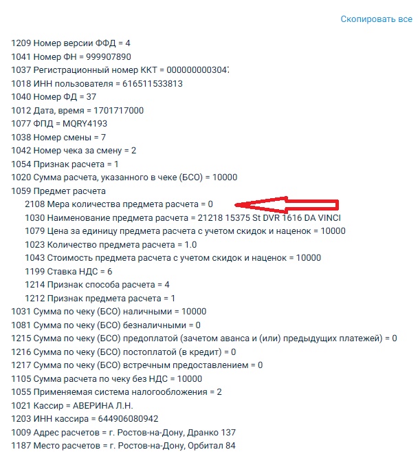 Иногда завидую Змею Горынычу. :-) Как догадались? На обычном товаре сработало, спасибо! У меня подозрение, что для маркированных товаров тоже так надо делать, они с такой же ошибкой в офд висят...