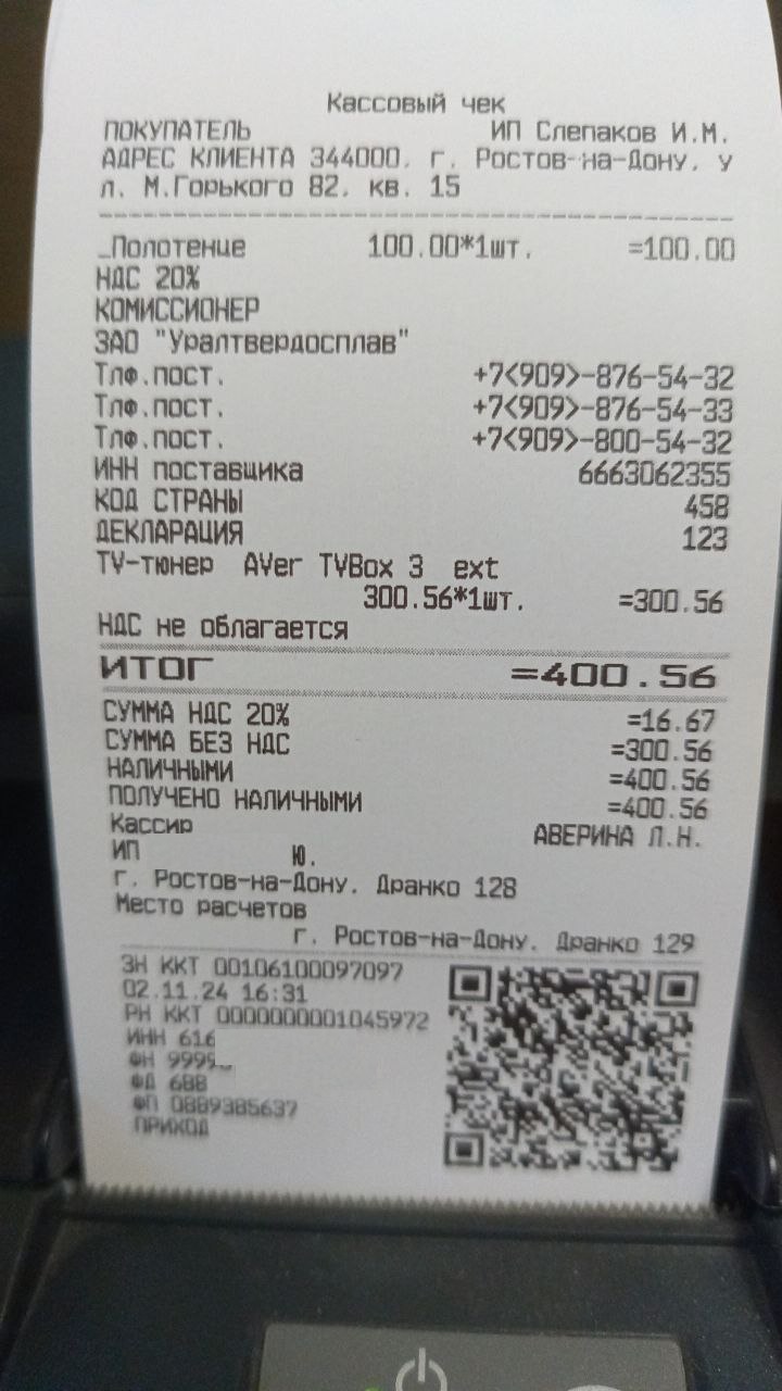 На вскидку чек со смешанной реализацией комиссионного и обычного товара.