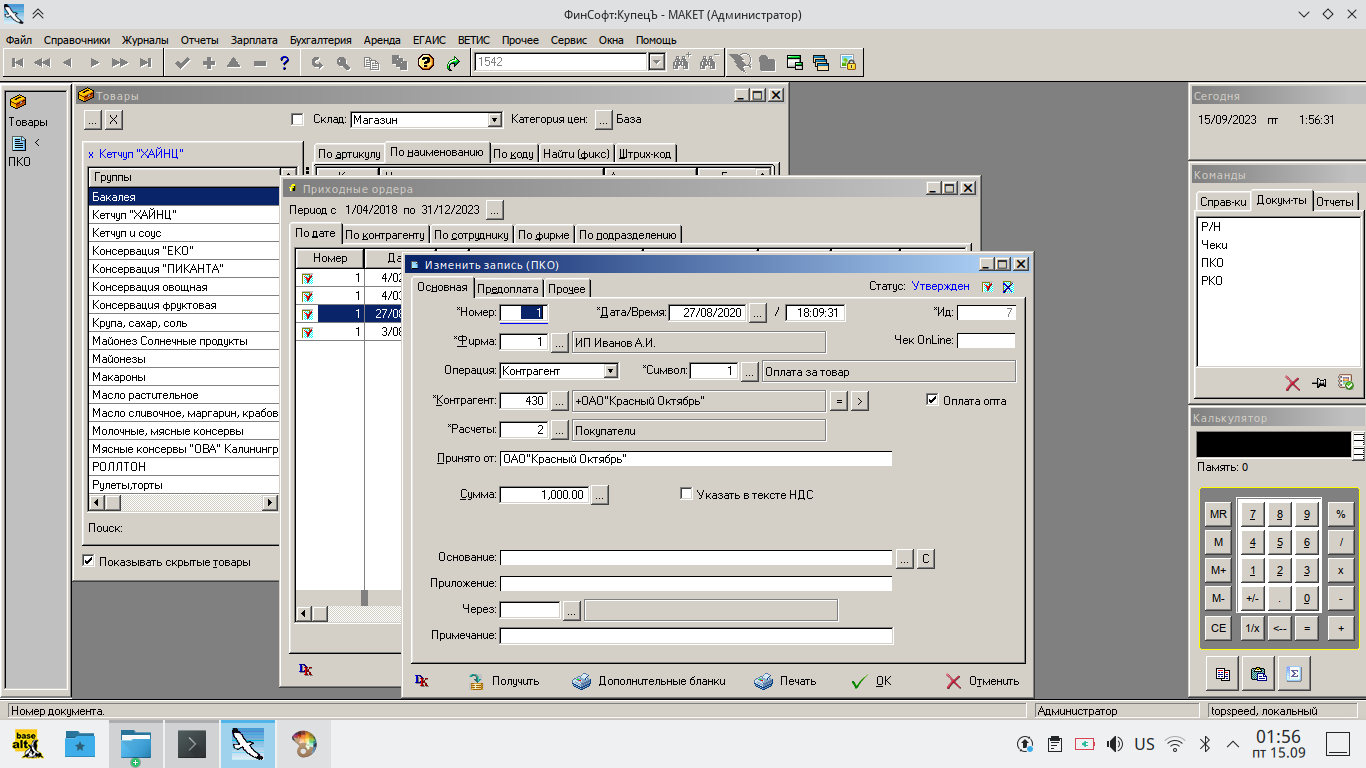 Вот и мой скриншот работы под wine для истории. Неплохо было бы проверить еще печатные формы, я так понимаю, что надо устанавливать дефолтный принтер в линуксе. Или нафик это...?