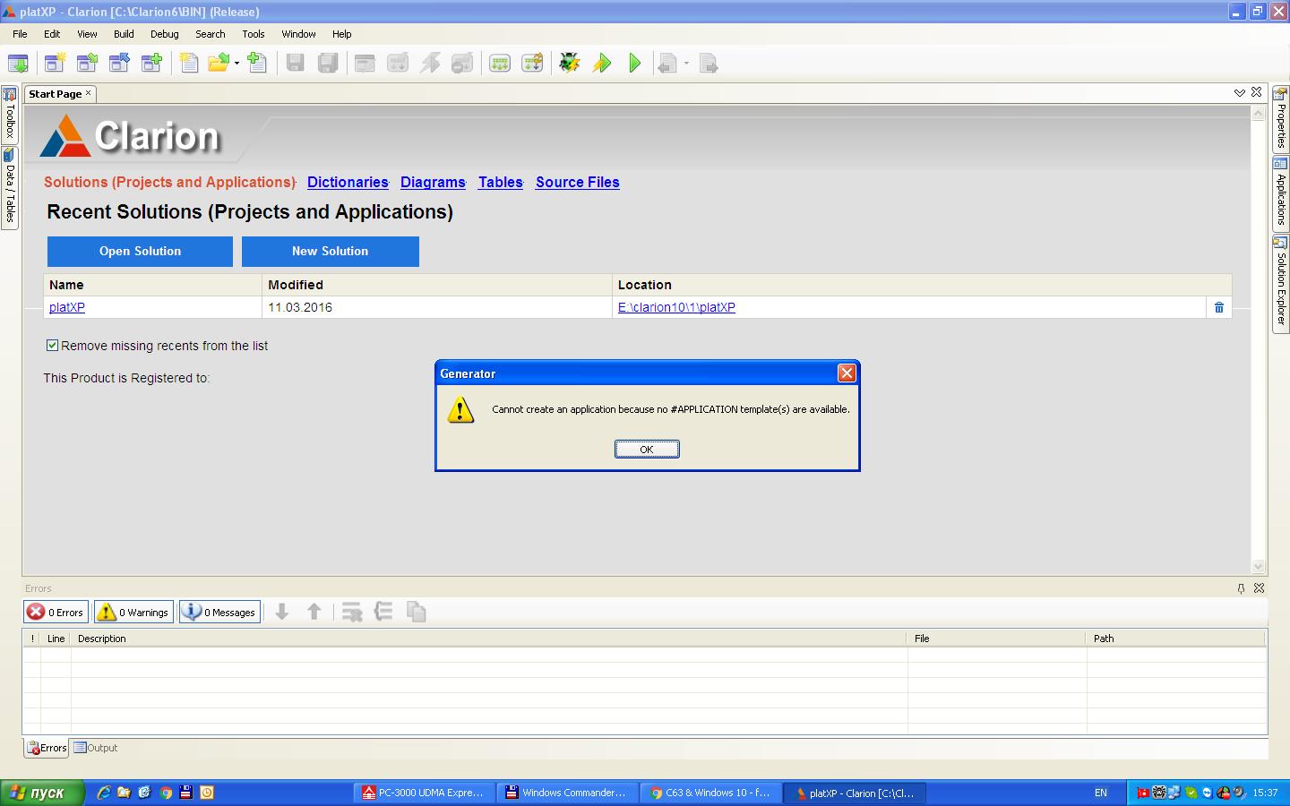 3. Dct и App-файлы CW6 нормально (ну, почти... несколько ошибок конвертации таки было) конвертируются в новый Кларион. Далее я строил solution для exe-файла с автоматическим подключением остальных app, загружал их - и запускал генерацию и компиляцию. Программа продолжает компилироваться для CW6, но уже в среде CW10. Возможность работать с solution - коллекцией из нескольких app практически делает ненужными менеджеры компиляции. А после освоения среды можно просто сменить в Build->Set Clarion Version версию на новую.